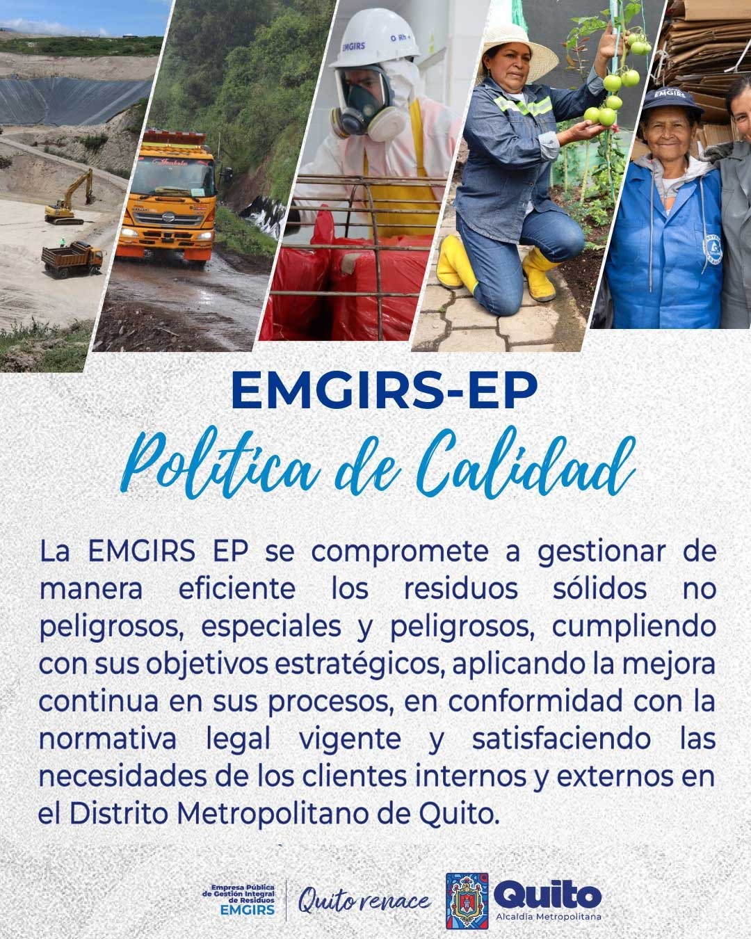 La EMGIRS EP ha establecido políticas empresariales con el objetivo de guiar y regular sus operaciones, decisiones y relaciones con sus distintos grupos de interés. Estas políticas abarcan áreas como la calidad del servicio, la protección del medio ambiente, la ética empresarial, la responsabilidad social corporativa y el cumplimiento normativo. Las mismas, reflejan el compromiso de la empresa con la excelencia operativa y al desarrollo sostenible, así como su responsabilidad hacia sus empleados, clientes, proveedores, comunidades y el entorno en general.